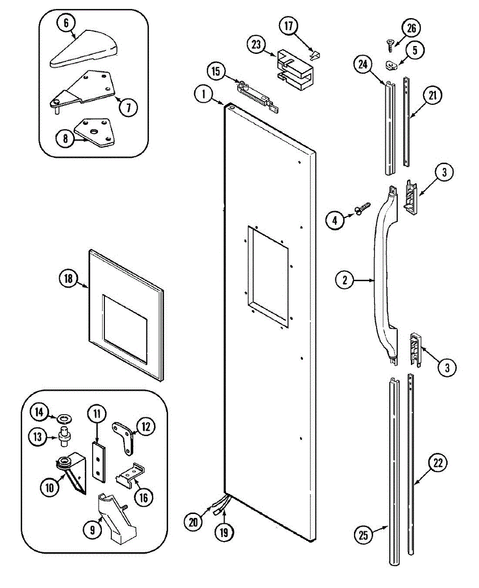 Mounting screw secures panels, brackets, and trim on refrigerators and washers. Replace when fasteners are missing, loose, stripped, or damaged.