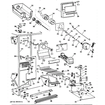 This OEM Replacement Part is an ice container assembly for GE side-by-side refrigerators from 1998 models and newer with 24 to 27 cubic feet capacity. The assembly includes a 12 3/8” wide x 12 3/8” long x 14 5/8” tall ice bucket with an integrated auger to rotate and move ice into the dispenser chute. The auger within the assembly helps move the ice cubes forward, enabling easy access and dispensing.