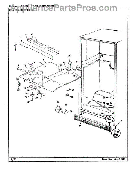 This factory screw secures appliance components to their mounting points. Replace missing, worn, or stripped hardware to restore a tight fit, proper alignment, and quieter operation across the affected assembly.