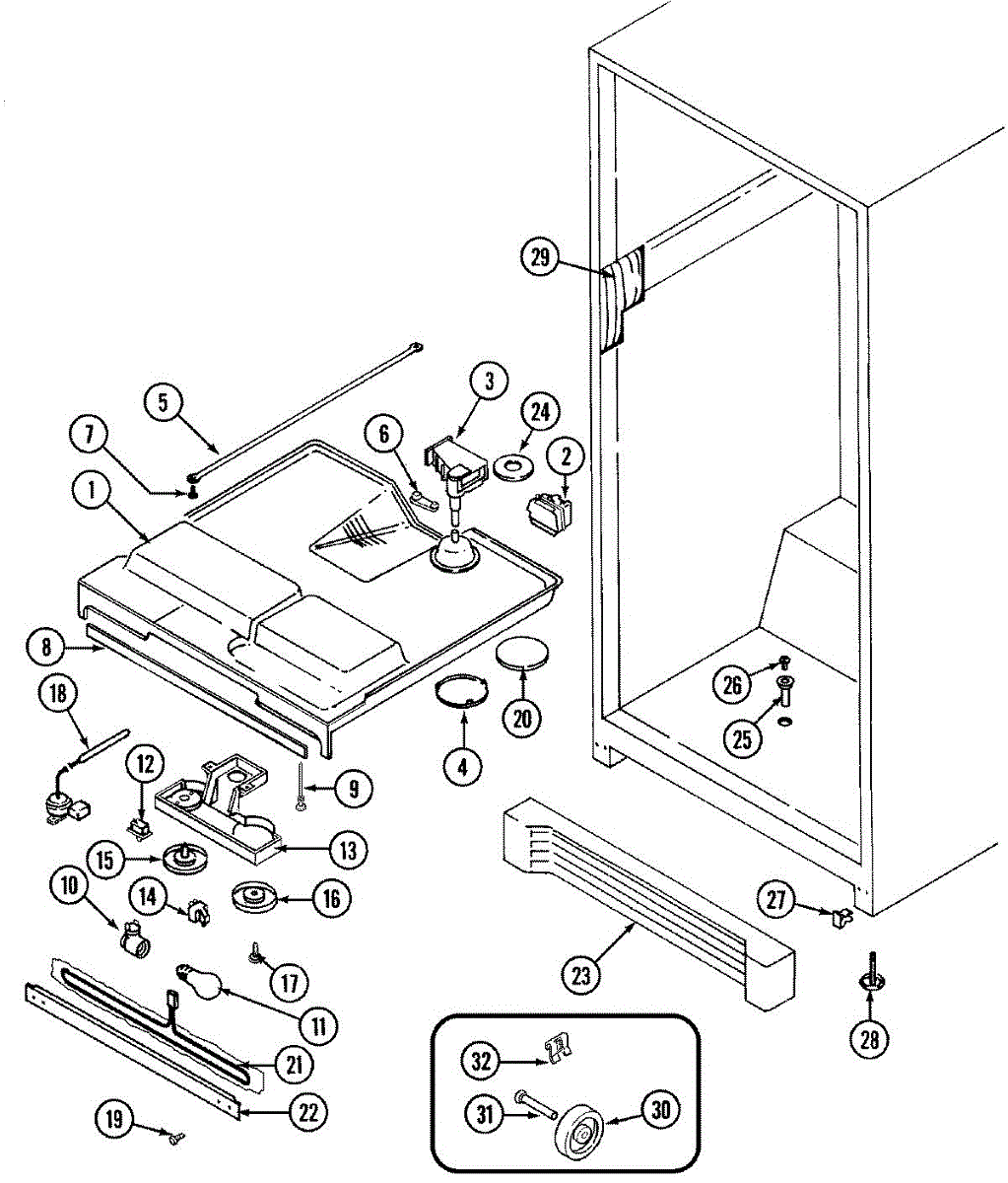 An adjustable leveler that supports and raises or lowers the appliance to help stabilize it on uneven floors. Restores proper alignment to reduce rocking, vibration, and door misalignment for improved performance and safety. What it does: