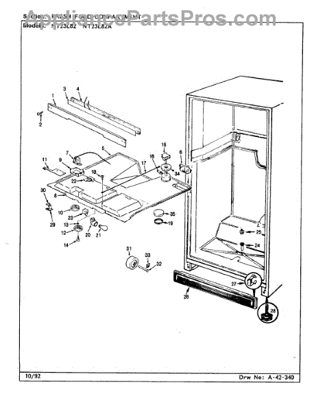 This factory screw secures appliance components to their mounting points. Replace missing, worn, or stripped hardware to restore a tight fit, proper alignment, and quieter operation across the affected assembly.