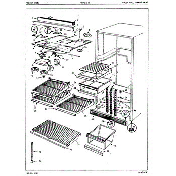 The crisper shelf center support stabilizes the pan cover above the crisper drawers to keep it level under load. Replace a cracked or missing support to restore proper shelf alignment and smooth crisper drawer operation.