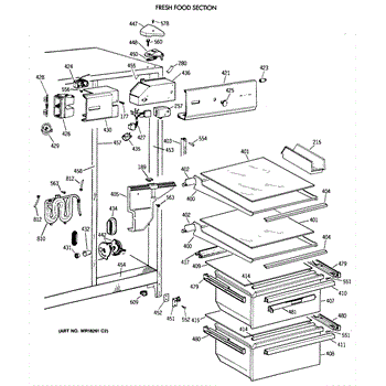 This left-hand drawer slide assembly mounts inside the refrigerator's fresh food section. It supports the shelf/cover and guides the drawer on its track, restoring smooth operation and proper alignment when the original rail is cracked or worn.