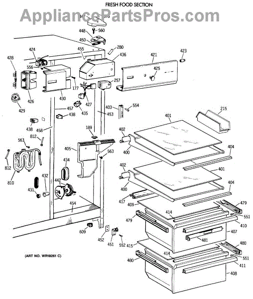 Parts for Ge CSH24GRXAAA: 03 - Fresh Food Section Parts