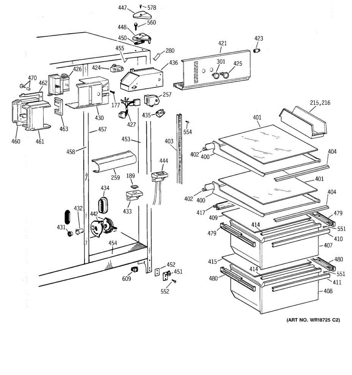 The Light Switch is an OEM replacement part for GE refrigerators. It controls the interior light, turning it on when the refrigerator door is opened and off when the door is closed. This ensures proper illumination for visibility when accessing the refrigerator's contents.