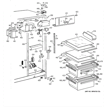 The Slide Assembly RH is an OEM replacement part for GE side-by-side refrigerators. As a replaceable sub-assembly, it restores smooth extension of plastic vegetable/multi-purpose slides on the right interior. The slide measures approximately 16 inches.