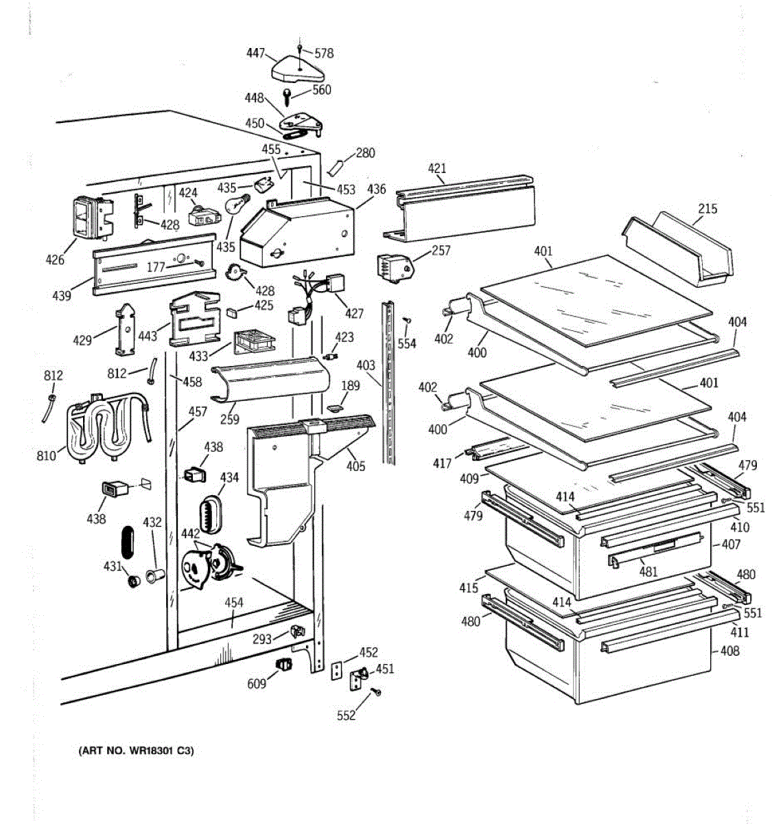 This left-hand drawer slide assembly mounts inside the refrigerator's fresh food section. It supports the shelf/cover and guides the drawer on its track, restoring smooth operation and proper alignment when the original rail is cracked or worn.