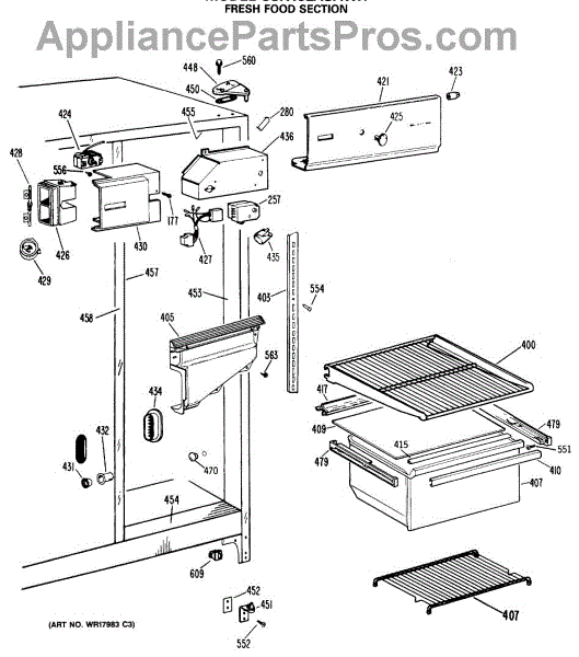 The Drawer Slide Assembly is an OEM part for GE refrigerators. It allows for smooth and easy movement of the refrigerator drawers, ensuring convenient access to stored food items. It provides the necessary support and stability to hold the weight of the contents within the drawers. The slide measures approximately 16 1/4 inches long.