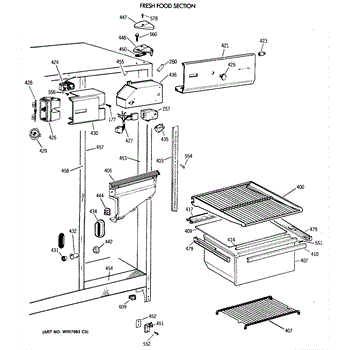 The Drawer Slide Assembly is an OEM part for GE refrigerators. It allows for smooth and easy movement of the refrigerator drawers, ensuring convenient access to stored food items. It provides the necessary support and stability to hold the weight of the contents within the drawers. The slide measures approximately 16 1/4 inches long.
