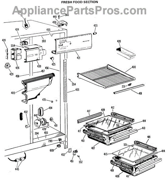 Parts for Ge CSX20EHD: 03 - Fresh Food Section Parts