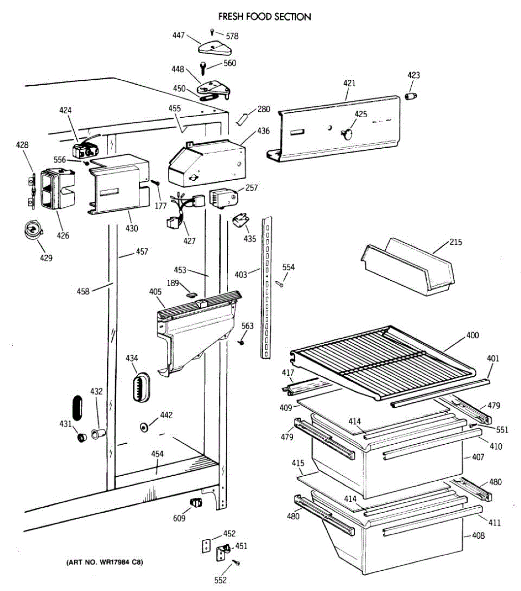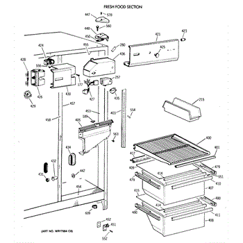 This left-hand drawer slide assembly mounts inside the refrigerator's fresh food section. It supports the shelf/cover and guides the drawer on its track, restoring smooth operation and proper alignment when the original rail is cracked or worn.