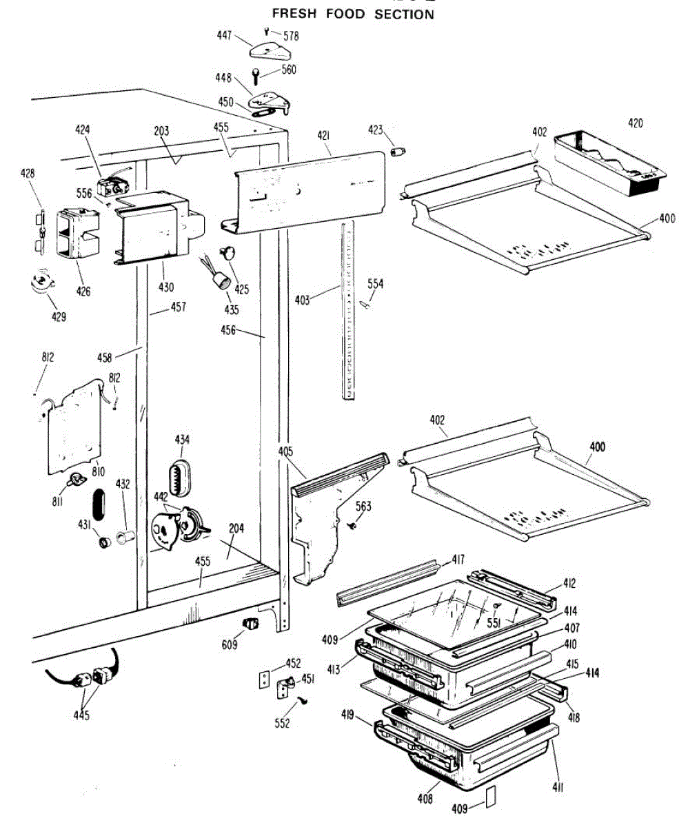A bad Drawer Slide Assembly can occur due to wear and tear over time, excessive load strain, or damage caused by accidental mishandling. If the slide assembly becomes worn, bent, or broken, it can lead to issues such as difficulty in opening or closing the refrigerator drawers, as well as potential damage to the drawers or their contents.