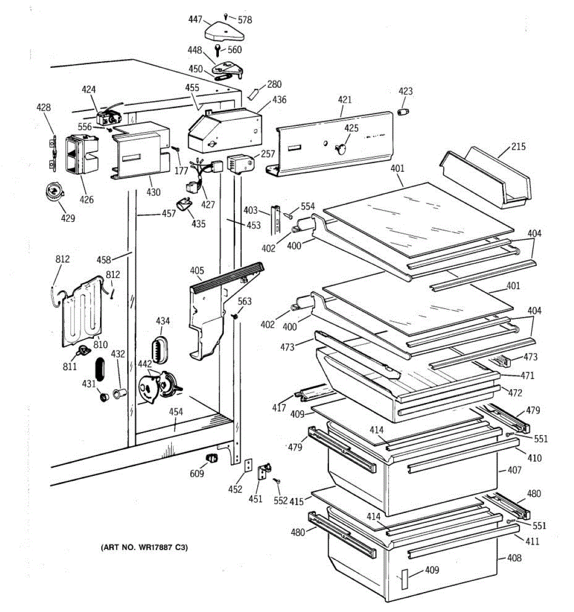 The Drawer Slide Assembly is an OEM part for GE refrigerators. It allows for smooth and easy movement of the refrigerator drawers, ensuring convenient access to stored food items. It provides the necessary support and stability to hold the weight of the contents within the drawers. The slide measures approximately 16 1/4 inches long.