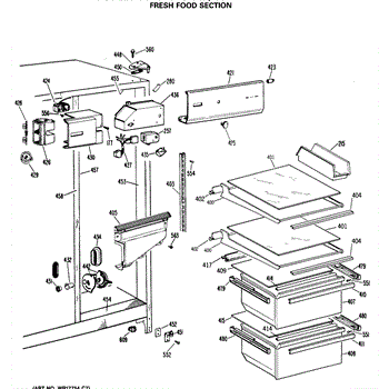 Causes for a malfunctioning Crisper Drawer Slide can include wear and tear from regular use, the accumulation of debris obstructing the slide's path, or damage incurred from overloading the drawer. This GE replacement part is also compatible with Hotpoint, RCA, and some Kenmore models. For matching left-hand side order WR72X209.