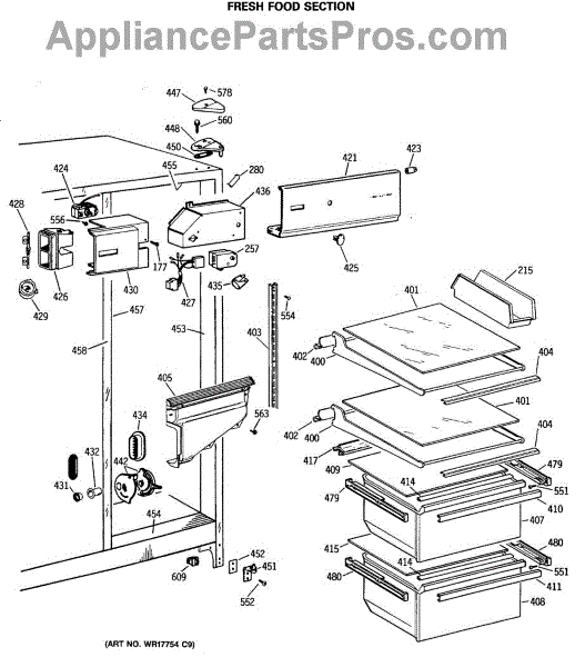Causes for a malfunctioning Crisper Drawer Slide can include wear and tear from regular use, the accumulation of debris obstructing the slide's path, or damage incurred from overloading the drawer. This GE replacement part is also compatible with Hotpoint, RCA, and some Kenmore models. For matching left-hand side order WR72X209.