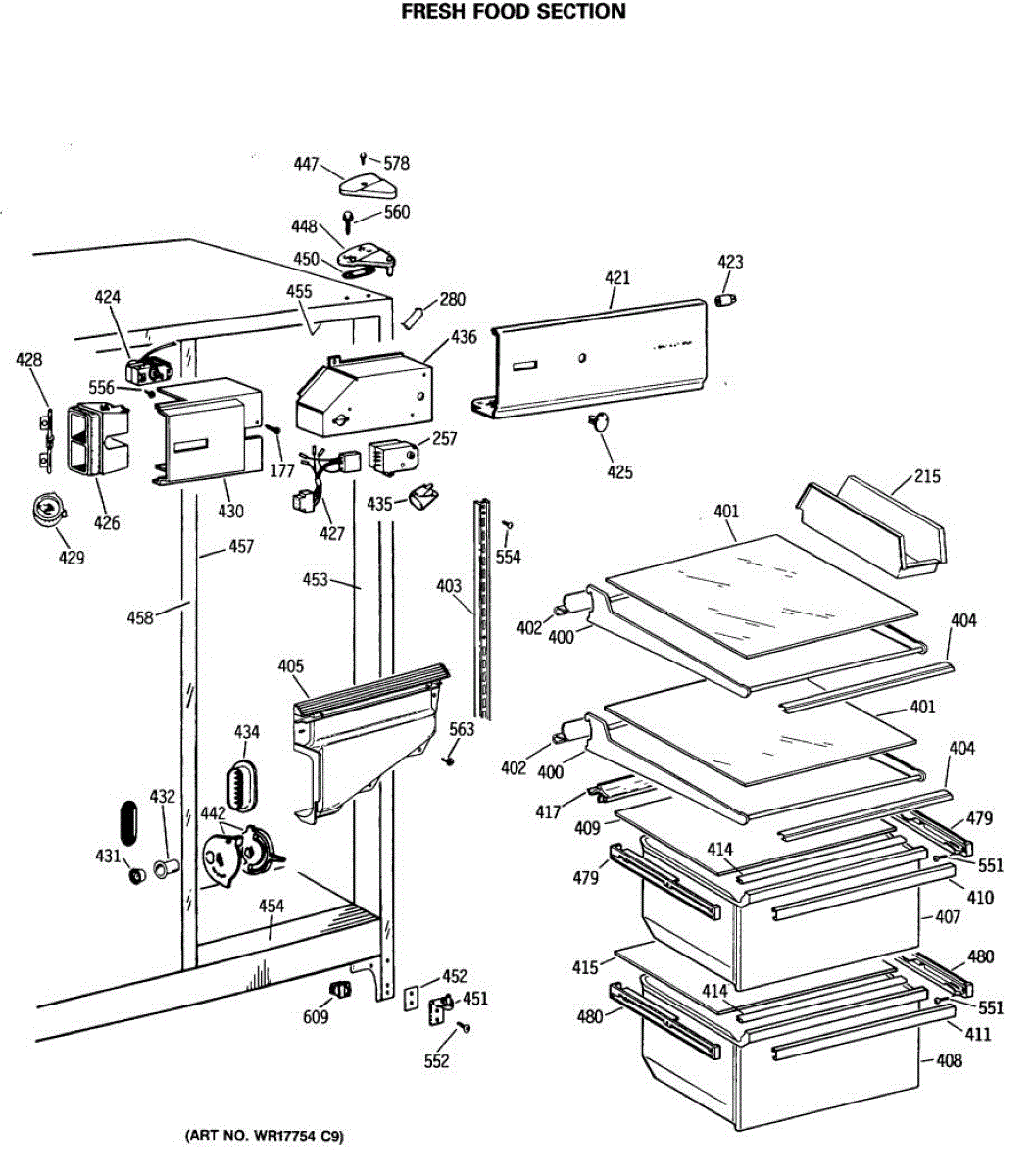The Drawer Slide Assembly is an OEM part for GE refrigerators. It allows for smooth and easy movement of the refrigerator drawers, ensuring convenient access to stored food items. It provides the necessary support and stability to hold the weight of the contents within the drawers. The slide measures approximately 16 1/4 inches long.
