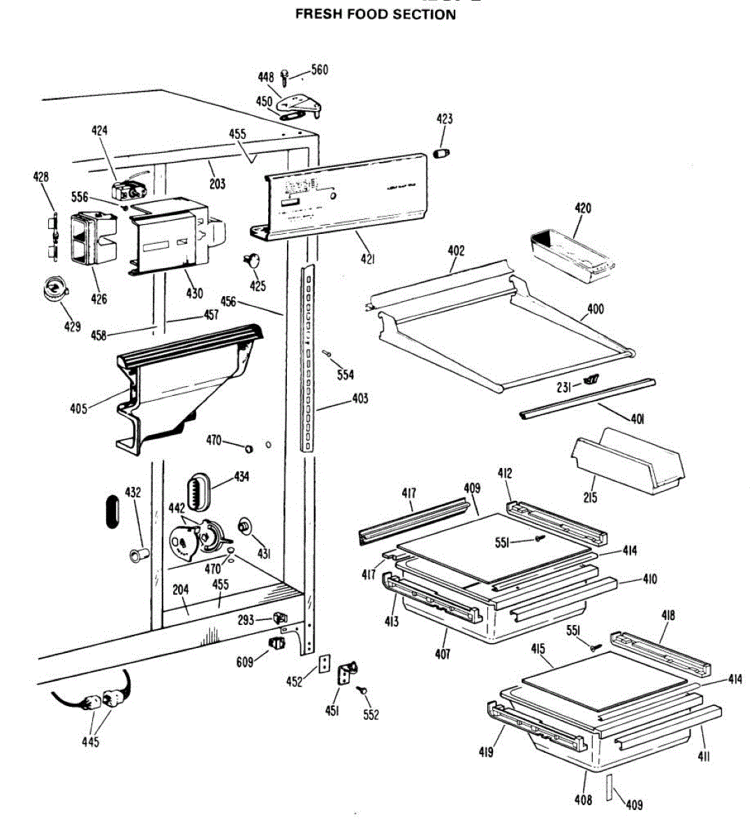 Parts for Ge CSX22GJE: 03 - Fresh Food Section Parts