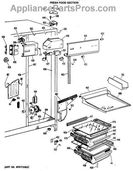 The Drawer Slide Assembly is an OEM part for GE refrigerators. It allows for smooth and easy movement of the refrigerator drawers, ensuring convenient access to stored food items. It provides the necessary support and stability to hold the weight of the contents within the drawers. The slide measures approximately 16 1/4 inches long.