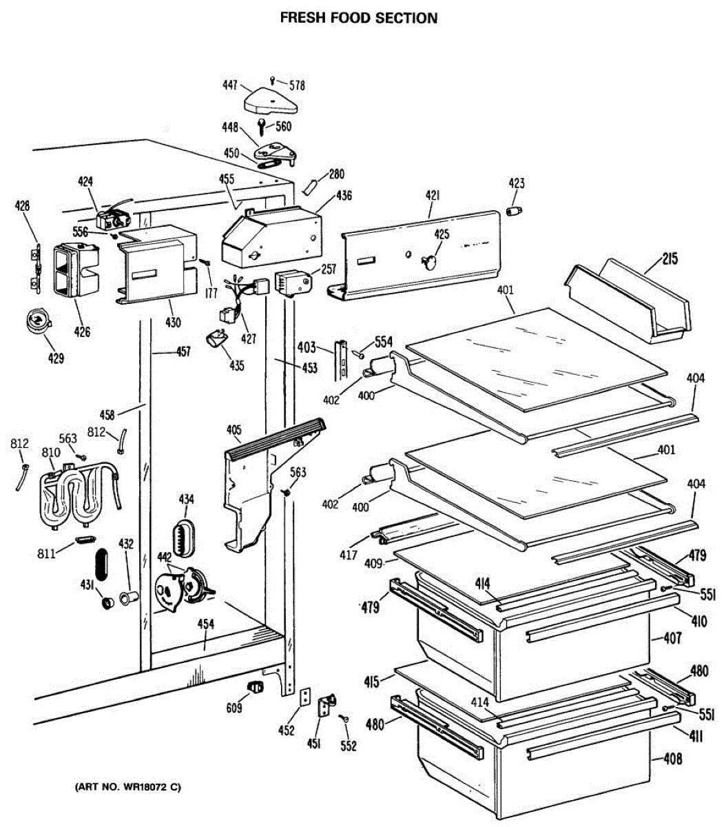 Parts for Ge CSX24GRSAAD: 03 - Fresh Food Section Parts