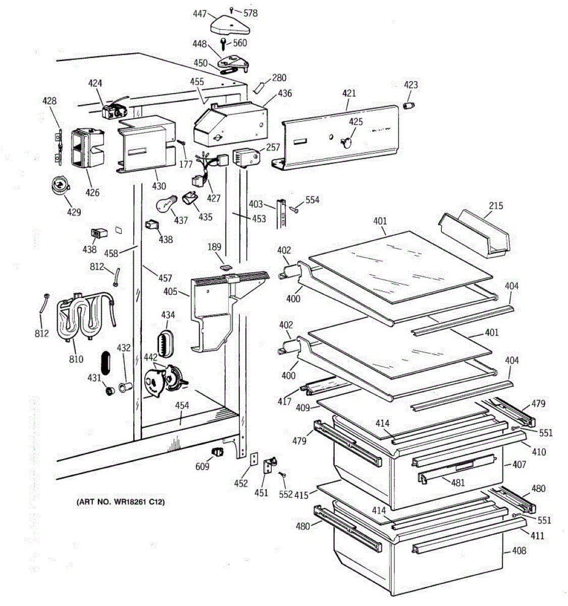 The Slide Assembly RH is an OEM replacement part for GE side-by-side refrigerators. As a replaceable sub-assembly, it restores smooth extension of plastic vegetable/multi-purpose slides on the right interior. The slide measures approximately 16 inches.