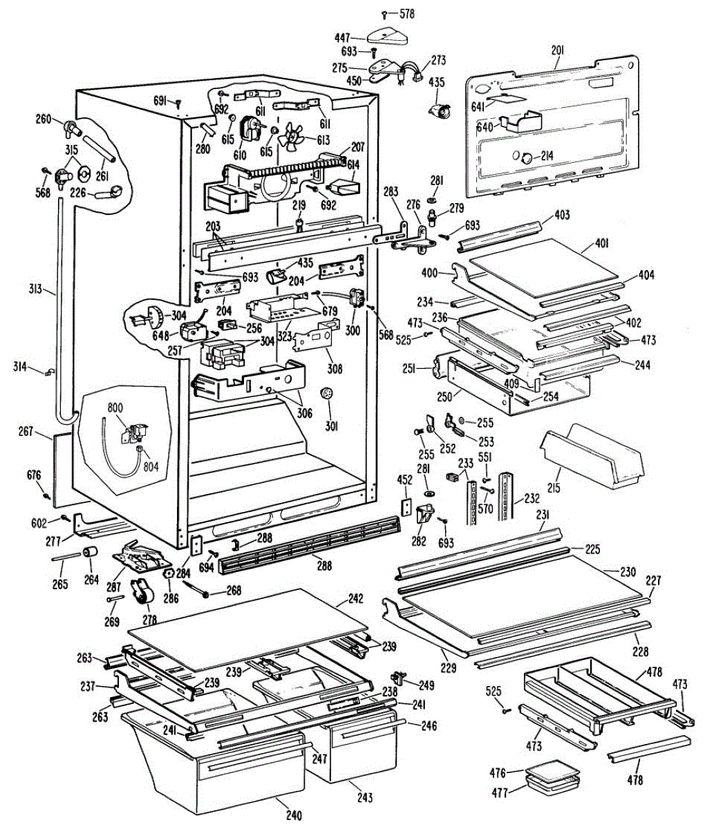 • Remove freezer shelves/ice bin and the rear panel to access the fan assembly