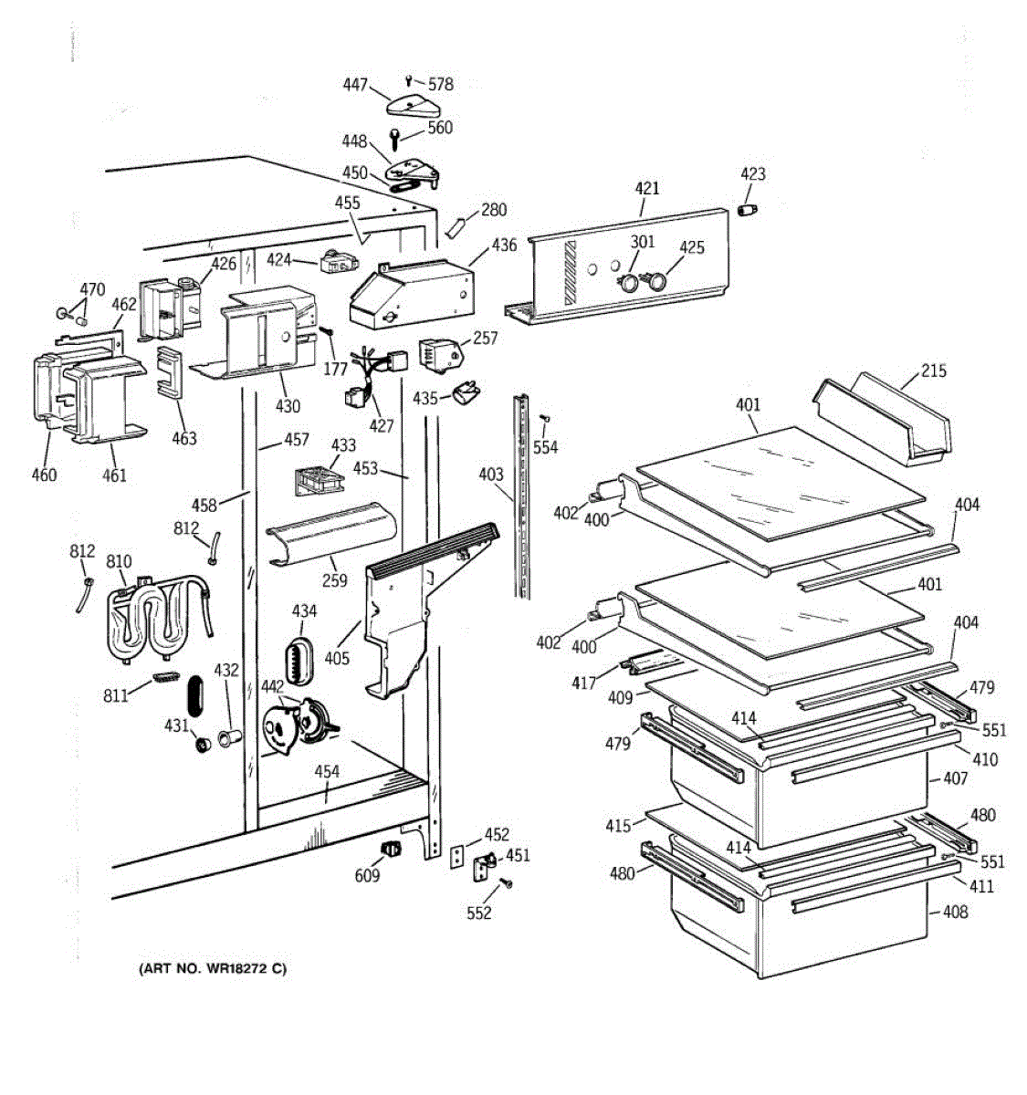 The Drawer Slide Assembly is an OEM part for GE refrigerators. It allows for smooth and easy movement of the refrigerator drawers, ensuring convenient access to stored food items. It provides the necessary support and stability to hold the weight of the contents within the drawers. The slide measures approximately 16 1/4 inches long.