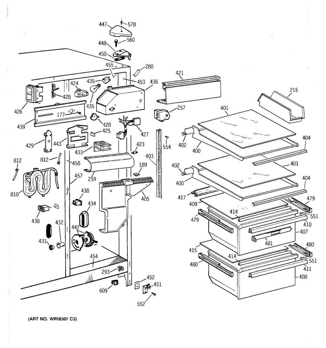This left-hand drawer slide assembly mounts inside the refrigerator's fresh food section. It supports the shelf/cover and guides the drawer on its track, restoring smooth operation and proper alignment when the original rail is cracked or worn.
