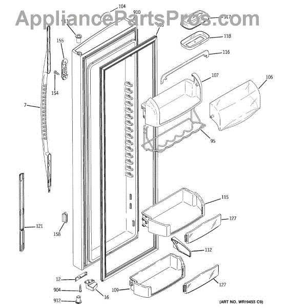 Parts for Ge RSK27NGSDCCC: 03 - Fresh Food Door Parts