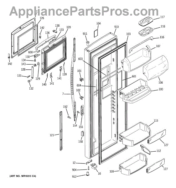 The Door Bin is an OEM part for GE refrigerators. It is a convenient storage compartment located on the interior of the refrigerator door, designed to hold and organize smaller items such as condiments, jars, or beverages.