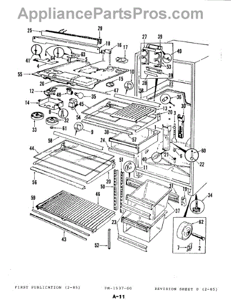 The crisper shelf center support stabilizes the pan cover above the crisper drawers to keep it level under load. Replace a cracked or missing support to restore proper shelf alignment and smooth crisper drawer operation.