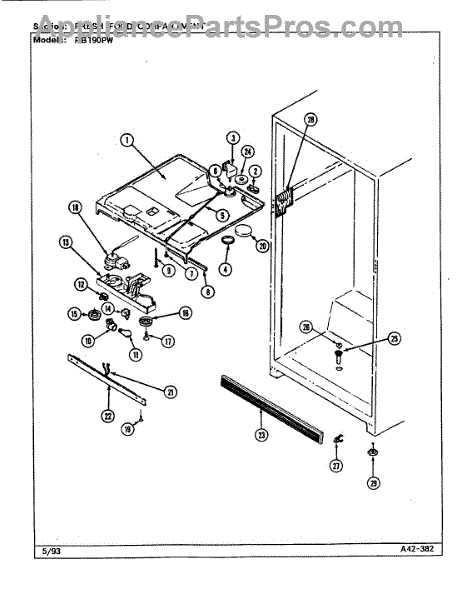 Parts for Magic Chef RB190PW / DE70A: 03 - Fresh Food Compartment Parts