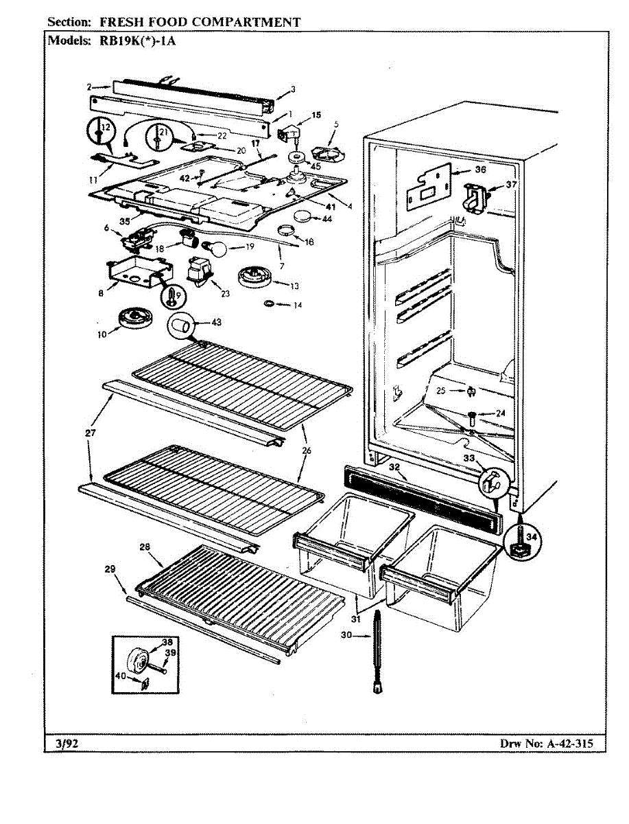 Original Whirlpool light bulb, 40 watt.