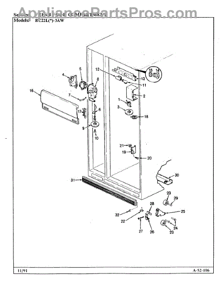 Parts for Magic Chef RC22LN-3AW / BS31D: 03 - Fresh Food Compartment Parts