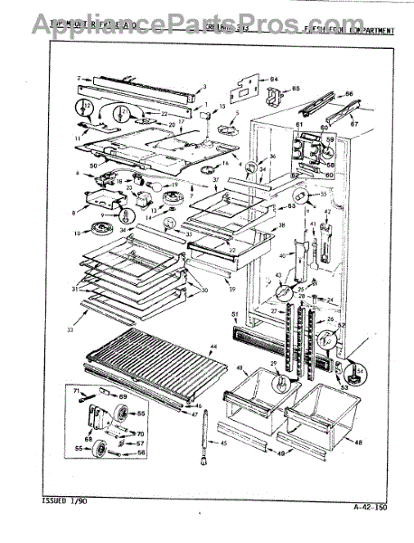 Center support that stabilizes the crisper cover above drawers to prevent sagging. Replace if cracked, broken, or missing to restore proper alignment.