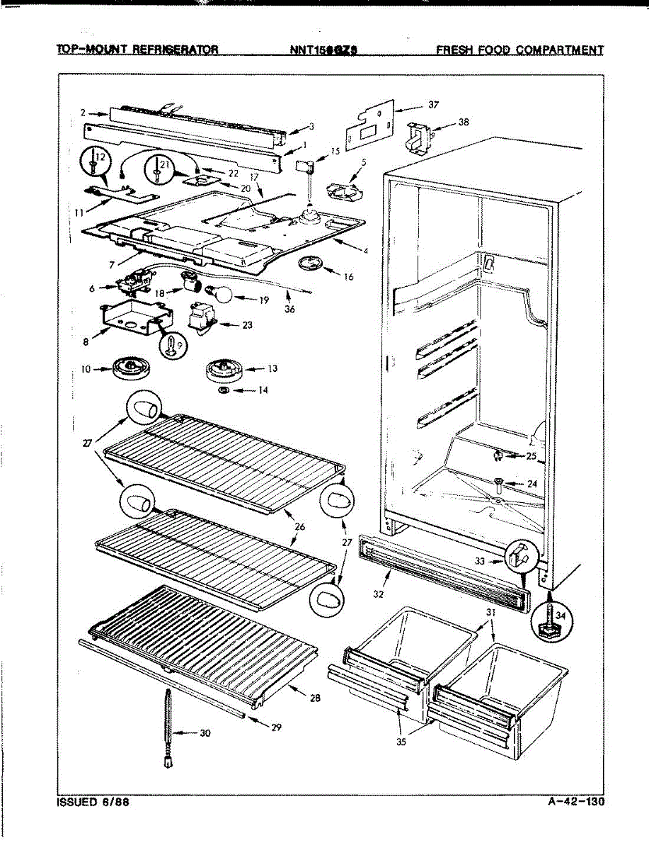 Center support that stabilizes the crisper cover above drawers to prevent sagging. Replace if cracked, broken, or missing to restore proper alignment.