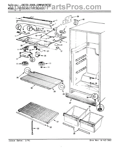 The crisper shelf center support stabilizes the pan cover above the crisper drawers to keep it level under load. Replace a cracked or missing support to restore proper shelf alignment and smooth crisper drawer operation.