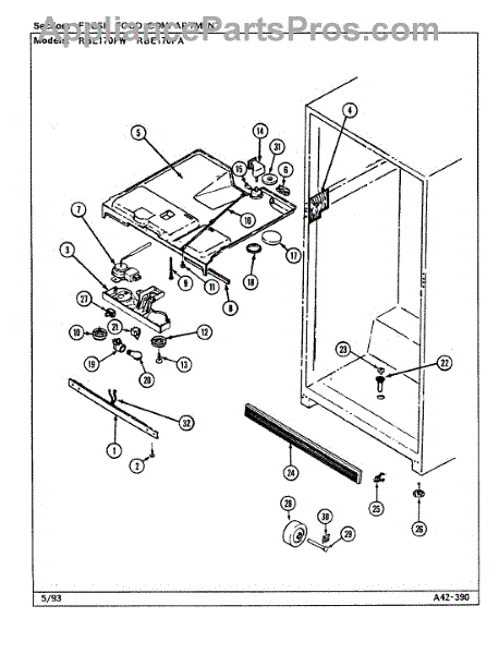 This factory screw secures appliance components to their mounting points. Replace missing, worn, or stripped hardware to restore a tight fit, proper alignment, and quieter operation across the affected assembly.