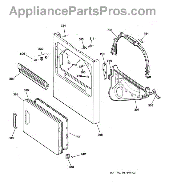 The Handle Door is an OEM part for GE dryers. This door handle allows for easy opening and closing of the dryer door, providing a secure grip to access the drum.