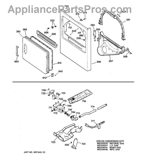 Meters gas flow to the dryer burner. Replace if damaged, clogged, or when converting between natural gas and LP. Installs at the burner assembly.