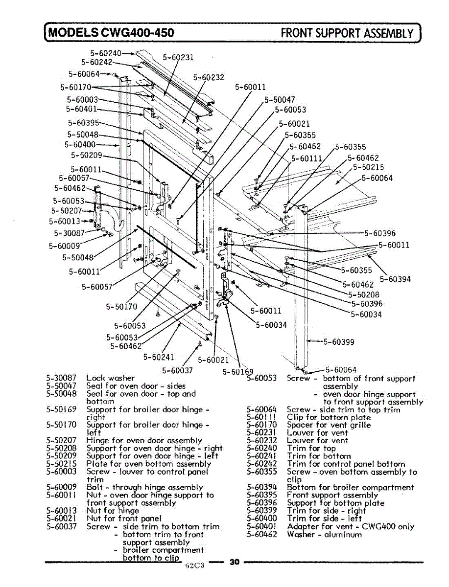 Horizontal oven door seal for top and bottom edges. Replace when worn to restore even heating and efficient baking. Hooks into slots on door frame.