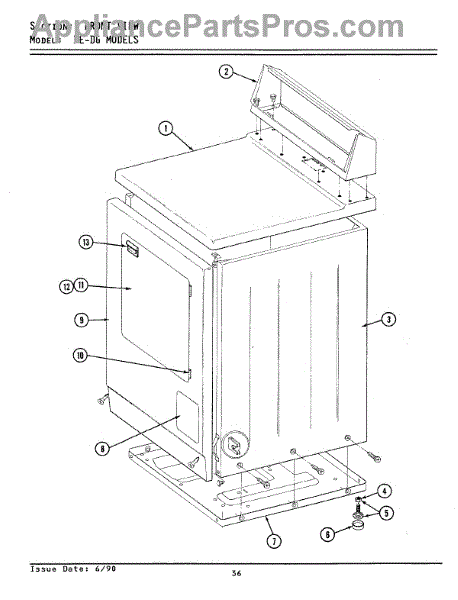 Parts for Maytag DE8420: 03 - Front View Parts