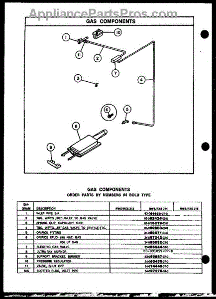 Parts for Amana RWS212: 03 - Gas Components Parts