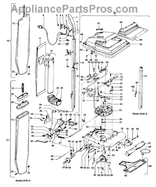 Parts for Hoover U4153---: 03 - Handle, Mainbody, Outerbag, Hood Parts