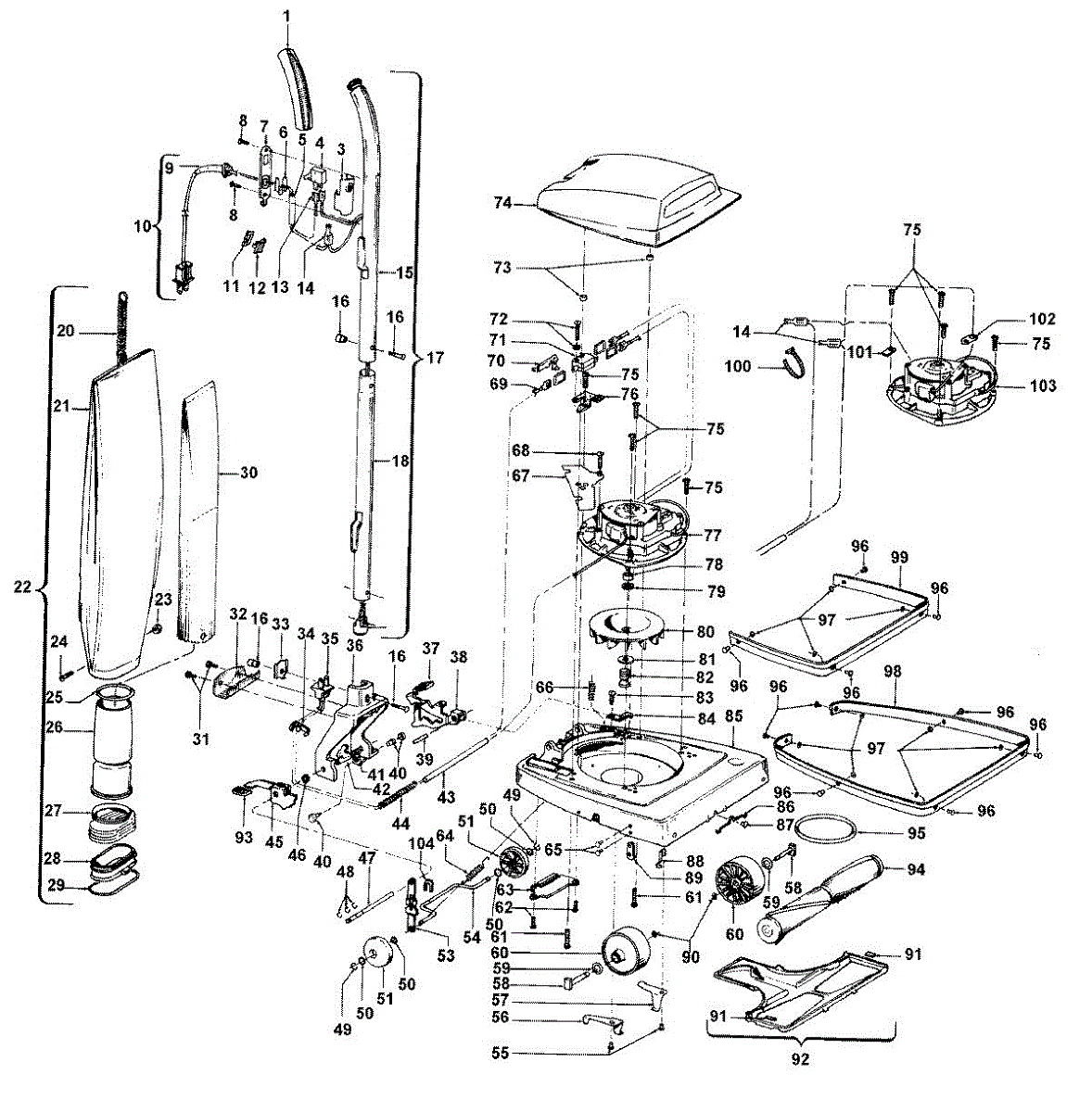 Parts for Hoover U4363045: 03 - Handle, Mainbody, Outerbag, Hood Parts