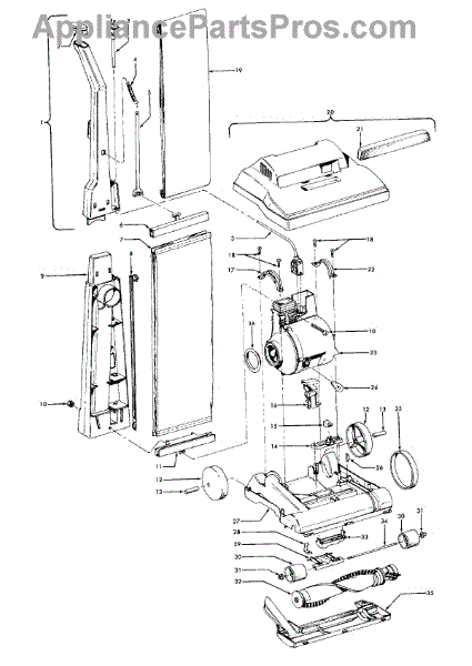 Parts for Hoover U4463-9: 03 - Handle, Mainbody, Outerbag, Hood Parts