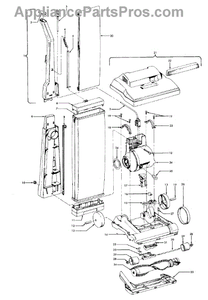 Parts for Hoover U4599900: 03 - Handle, Mainbody, Outerbag, Hood Parts