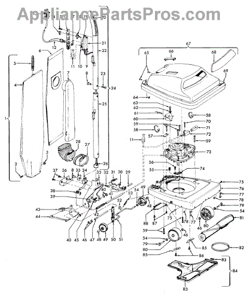 Parts for Hoover U4727900: 03 - Handle, Mainbody, Outerbag, Hood Parts