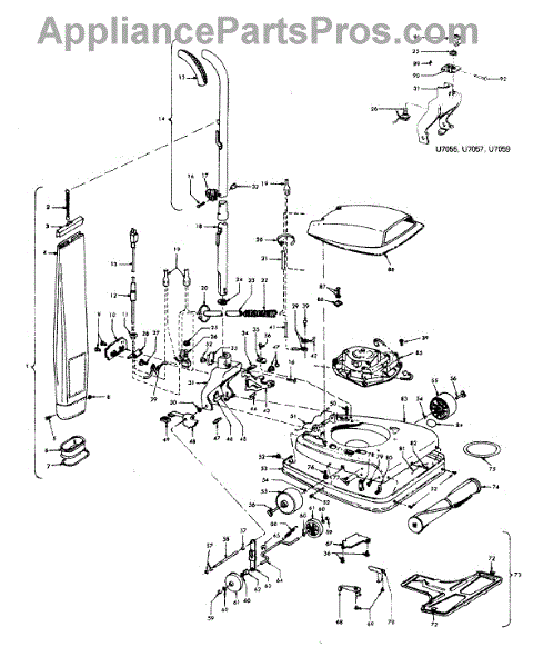 Parts for Hoover U7043---: 03 - Handle, Mainbody, Outerbag, Hood Parts