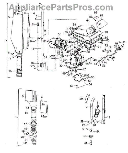 Parts for Hoover U1025---: 03 - Handle, Outerbag, Hood Parts