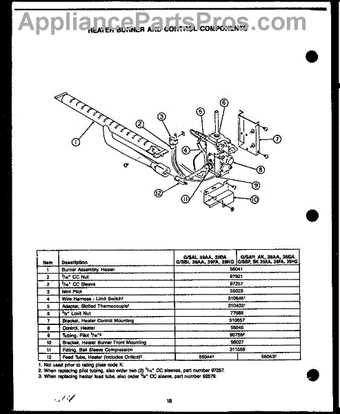 Parts for Amana GBL39HG: 03 - Heater Burner And Control Components Parts